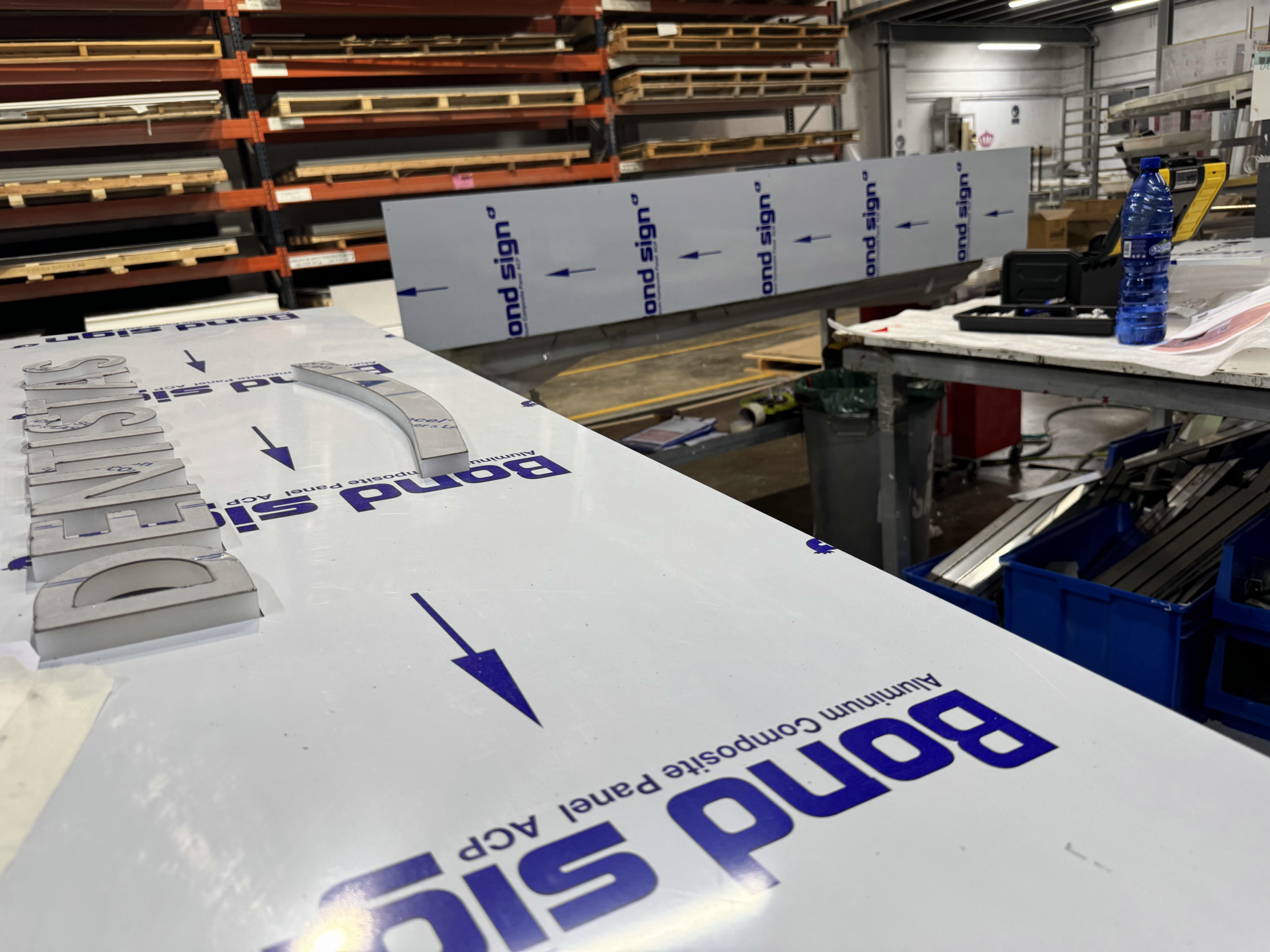 Ideal para producir cajones de dibond con fresadora, tanto con luz como sin luz. Letras gigantes para naves industriales, y recubrimiento de fachadas y paredes.